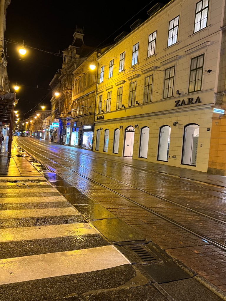 30 hours after leaving home, with next to no sleep , we were in bed just as the sun was setting. We figured we’d get a good nights sleep and see Zagreb in the morning.