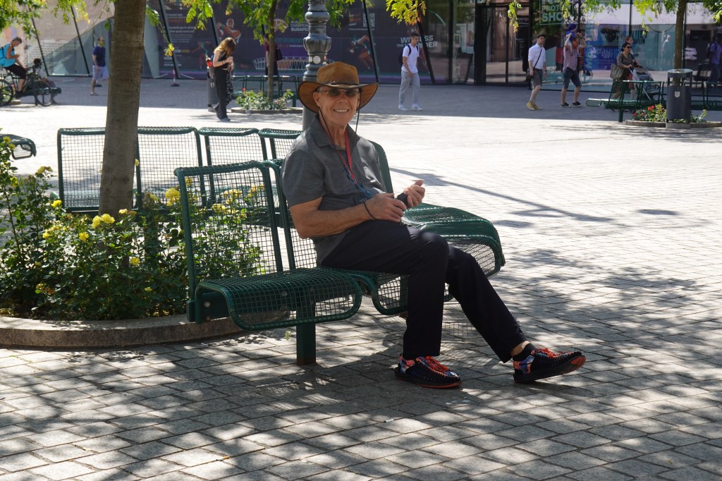Since we arrived a couple of days early, we found a nice bench to sit and relax while the rest of the group used their free time to shop!
