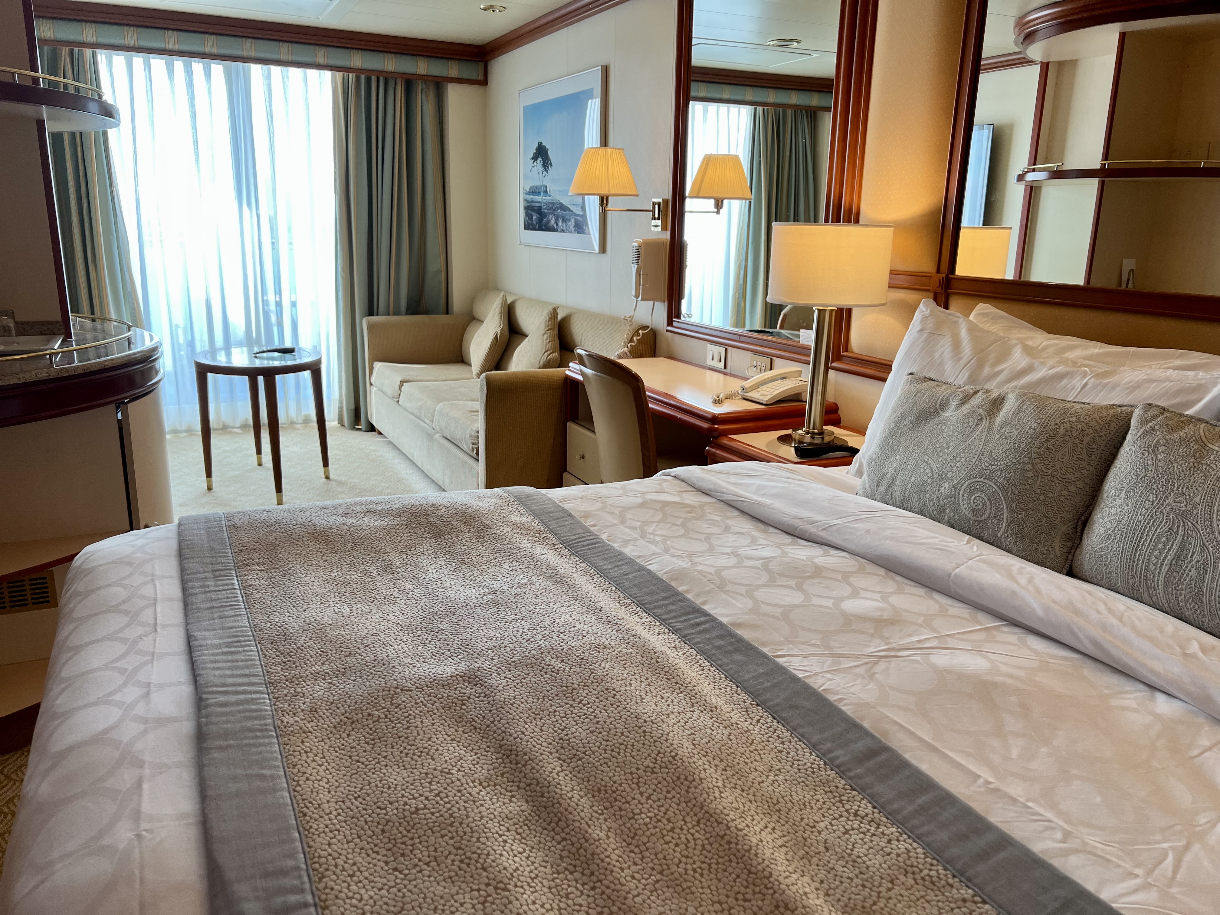 We discovered a lovely birthday greeting for Jay on the monitor as we left for lunch. The new ship medallions know precisely where you are and will recognize you as you approach your door or any display monitor. I am aware that some people dislike the concept of being tracked but I personally do not mind, I just hope they figure it out right away if I fall overboard though I doubt that would happen as I have no plans of hanging over the edge of the ship! We also ran into Raj who we met last year on the same ship!