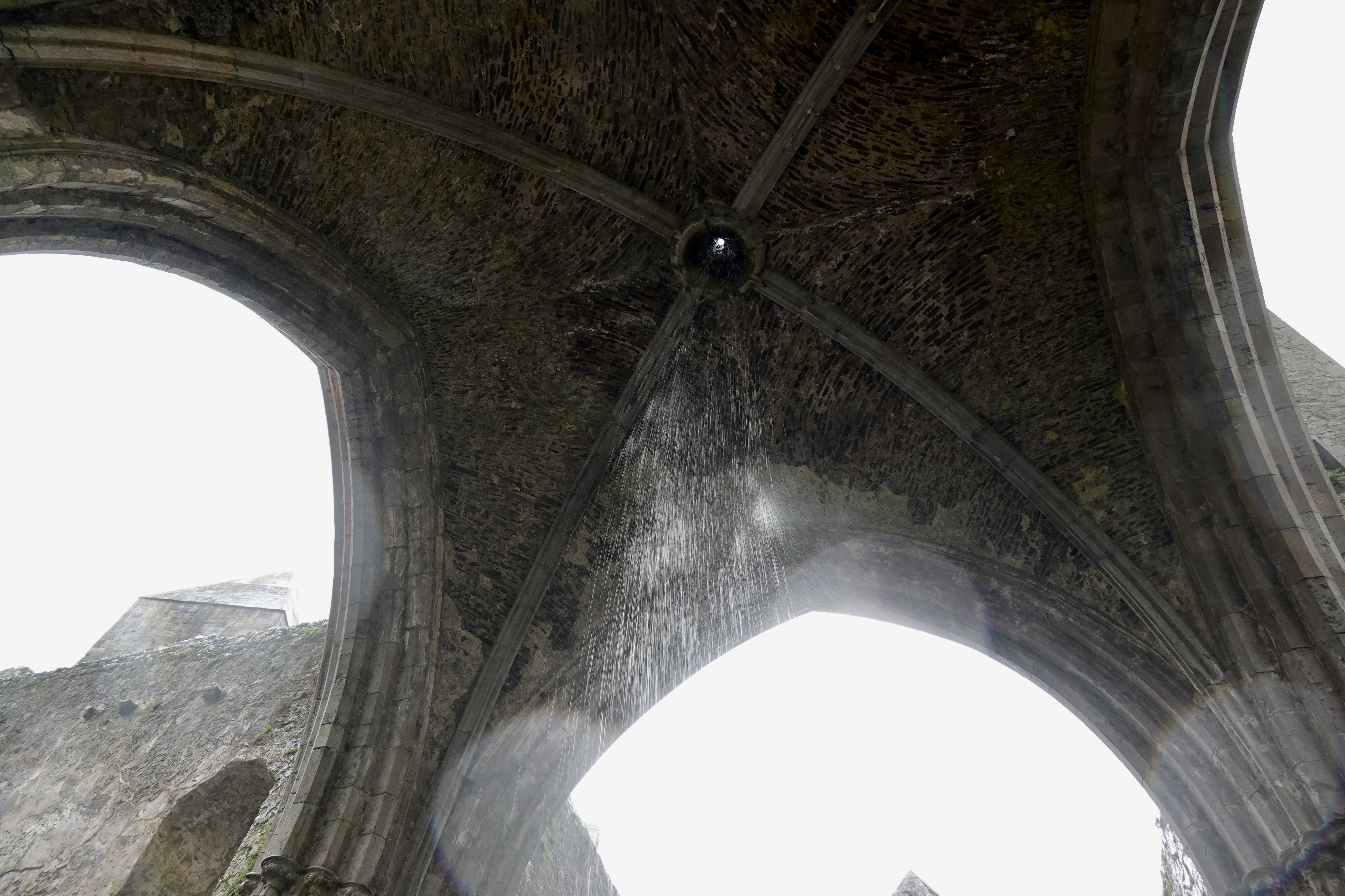 Set on a dramatic outcrop of limestone in the Golden Vale, the Rock of Cashel, iconic in its historic significance, possesses the most impressive cluster of medieval buildings in Ireland. Among the monuments to be found there is a round tower, a high cross, a Romanesque chapel, a Gothic cathedral, an abbey, the Hall of the Vicars Choral and a fifteenth-century Tower House. These The surviving buildings are remarkable. Cormac’s Chapel, for example, contains the only surviving Romanesque frescoes in Ireland.