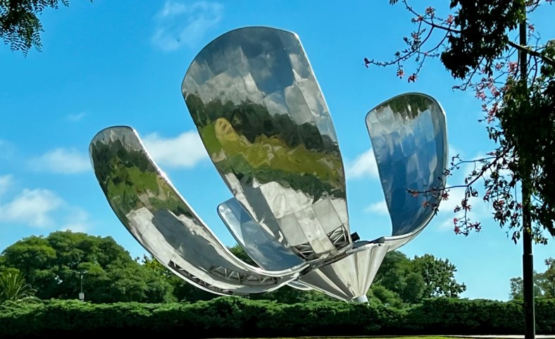 The Floralis Genérica, a stunning metal flower sculpture located in Buenos Aires was designed by Argentine architect Eduardo Catalano, this impressive sculpture stands at 23 meters (75 feet) tall when the petals are open. It’s made of stainless steel and aluminum and has a unique feature of opening and closing its petals daily, mimicking the natural behavior of a flower. The Floralis Genérica symbolizes hope and rebirth, making it a notable landmark in the city.
