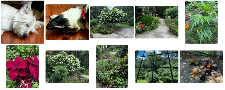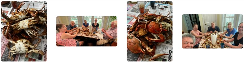 While visiting with Lolly, we also shared one of those simple, joy-filled afternoons—a blue crab feast with Betty, Mike, and Janice that felt like summer distilled onto a plate. We met the new “puppy,” Jake, who’s full of energy and curiosity, but it’s still clear Charlie runs the show—even if he’s half the size and twice the sass. Lolly’s garden was in full bloom, vibrant and welcoming, and the chickens added their own chatter to the day. It was one of those moments stitched with celebration and continuity—a gentle reminder of the life that carries on. We had so much crab left that Jay and I were able to enjoy a crab meal everyday, turning one memorable afternoon into a weeklong delight.