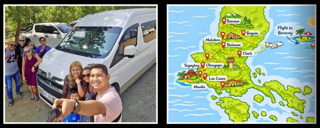 Our journey quietly traces a long, looping arc across Luzon — from Manila to Tagaytay, through Malabon and Bulacan, west to Olongapo, then up to Clark for the flight that carries us to Boracay, before heading back to Olongapo for some rest. From there, we go on to Baguio and Banaue, circling back through Las Casas and finally returning once more to Olongapo. Altogether, we cover roughly 1,480 to 1,720 kilometers (about 920 to 1,070 miles) — a stretch of road piloted with good humor and steady hands by Obet, our ever‑patient captain at the wheel. The van carries all of us faithfully, packed with laughter, snacks, and Buddy on the parts of the journey he is able to join. Looking back — even as we’re still in it — it isn’t just the distance that matters, but how every kilometer stitches together the people, places, and moments that make this homecoming feel complete.